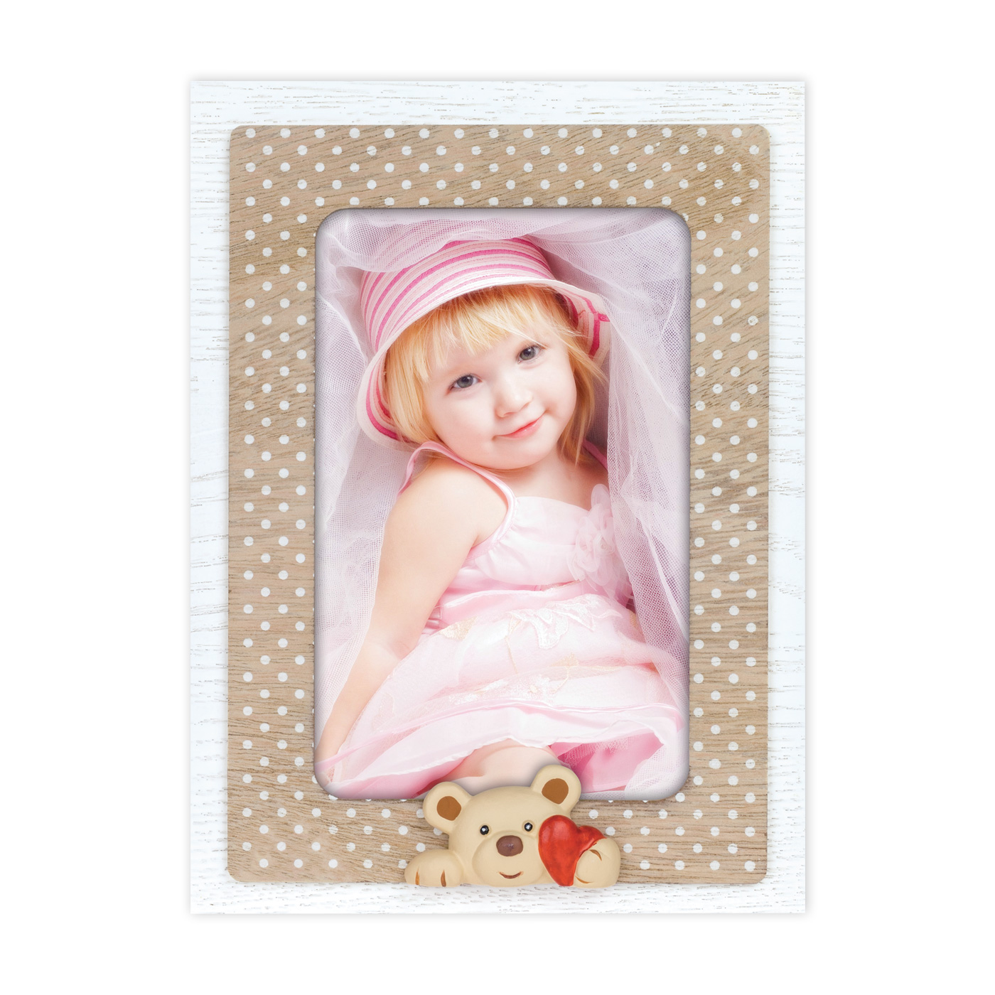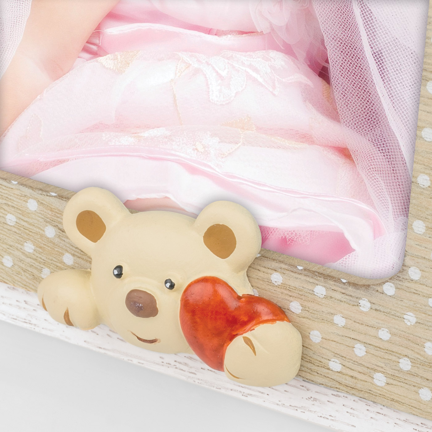SPECIAL FEATURES White polka-dot decoration and 3D resin teddy bear